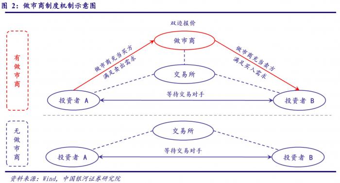 银河证券分析称,做市商和竞价交易是金融市场最基本的两种交易模式。做市制度利于提高市场流动性和交易活跃度,促进价格发现,增强市场稳定性。