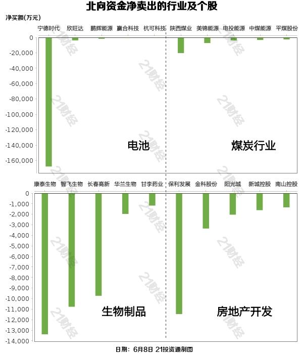 北向资金净卖出宁德时代(300750.SZ)、立讯精密(002475.SZ)、陕西煤业(601225.SH)、恒瑞医药(600276.SH)、格力电器(000651.SZ)居前,其中,宁德时代被净卖出16.76亿元,立讯精密被净卖出2.84亿元,陕西煤业被净卖出2.03亿元,恒瑞医药被净卖出1.91亿元,格力电器被净卖出1.90亿元。
