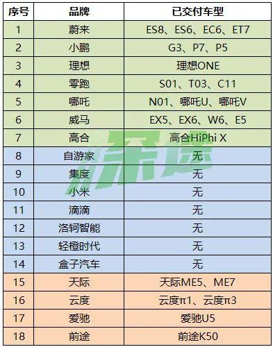 在造车新势力这一序列中,打头阵的品牌有七个,分别是蔚来、小鹏、理想、零跑、哪吒、威马、高合。这几个品牌都已经有量产车型,每个月稳定交付。其中,蔚来、小鹏、理想已经同时在美股和港股上市,零跑、威马在港股提交了上市招股书,哪吒、高合也有上市传闻。