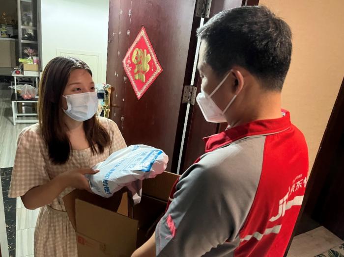 天津孙女士所在的远洋万和城小区,曾在6月初天津疫情反复时被划为封管控区。在西青区街道和社区的支持下,京东物流在北京“酒仙桥模式”的基础上,通过“志愿配送+无接触社区保供站”的新模式,累计为天津20多个封管控区送去生鲜蔬果、米面粮油和各类防疫用品,畅通了封管控区物资配送“最后100米”。