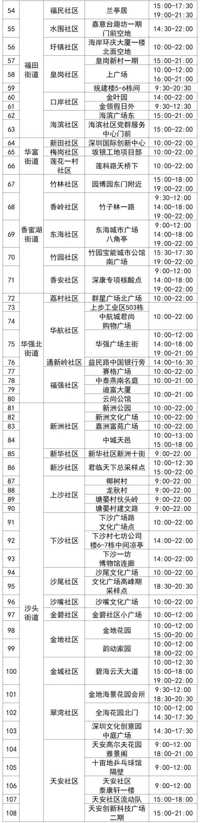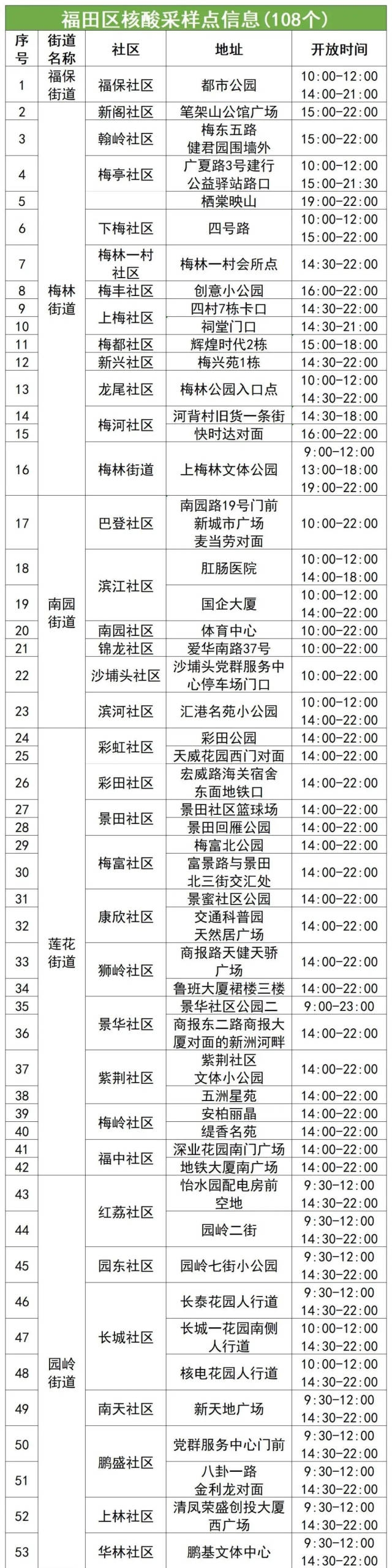 为方便居民进行核酸检测,6月18日,福田区设置108个对外公开的免费核酸检测采样点,为居民提供服务。