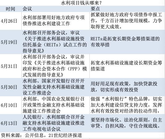 新兴的基础设施REITs也将是融资渠道之一。5月19日水利部召开部务会议,审议《关于推进水利基础设施投资信托基金(REITs)试点工作的指导意见》。会议表示,推进水利基础设施投资信托基金(REITs)试点工作,是创新水利投融资机制,适应水利基础设施建设融资需求、拓宽长期资金筹措渠道的有效举措。