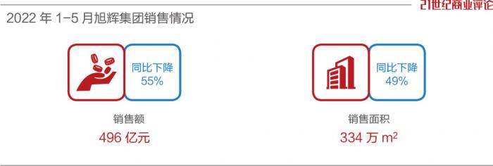 今年前5个月,旭辉的销售额为496亿元,销售面积为334万㎡,同比分别下降55%、49%。