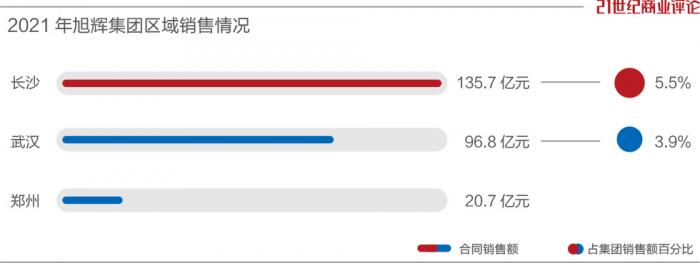 旭辉2021年财报显示,隶属于河南事业部的郑州,合同销售额仅有20.7亿元;广西事业部下属城市未显示合同销售额。