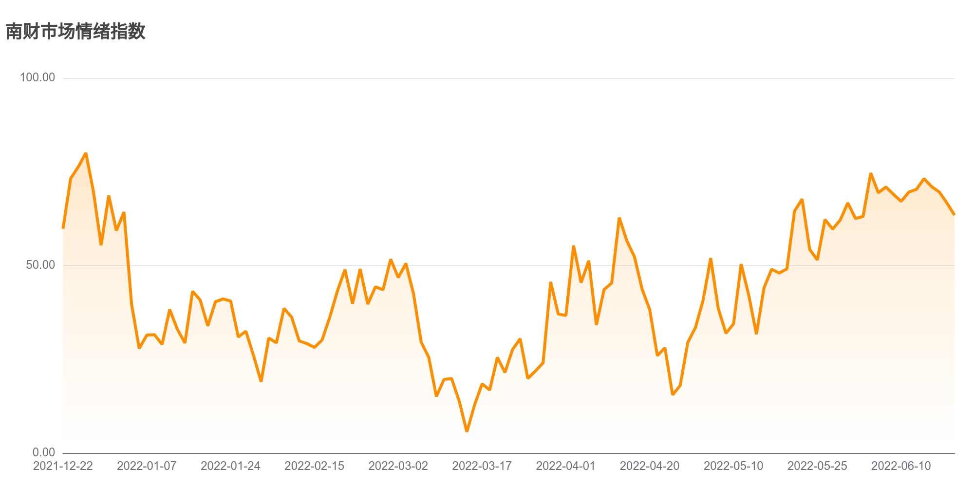 今日南财市场情绪指数为63.4,较前日66.7下跌,市场投资热度降低。A股市场的行为是非常情绪化的,当市场上涨时,投资者趋于贪婪,产生追涨情绪;当市场下跌时,往往会失去理智急于出售他们的资产。为量化投资者当前对购买股票的情绪程度,基于中国波指(iVIX)与CNN恐慌贪婪指数,南财量化团队挑选出五大指标,综合加权得到了南财情绪指数。南财情绪指数范围从0-100,越低表明市场投资热度较低,越高表明市场投资热度较高。南财情绪指数有助于市场参与者更好地认识和分析股票市场的波动风险和跳跃风险,市场投资热度偏低表明投资者过于担心,如果当前市场定价并不高,这可能是一个买入机会。市场投资热度偏高则表明投资者过于兴奋,如果市场处于高位,市场可能会进行调整。南财情绪指数的发布,不仅有利于投资者进行更佳的风险管理,也为维持金融市场的稳定繁荣提供了有效的参考依据。