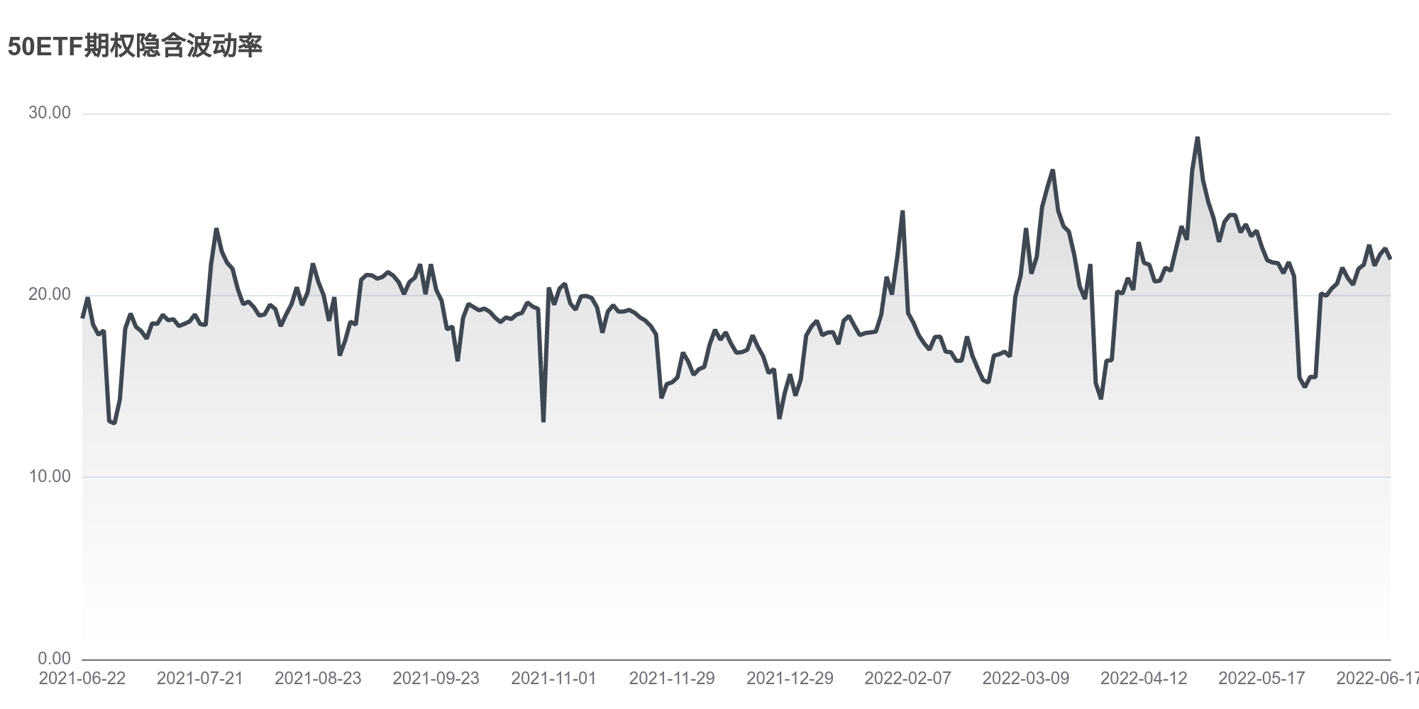 今日该指标值为21.97,目前该指标处于近一年较高区间,说明投资者认为未来市场波动处于较高水平。50ETF期权波动率(原中国波指iVIX,也称作恐慌指数),指数与上证指数存在负相关性,但不绝对。指数点位越高,代表投资者预期后市波动程度愈加激烈;指数点位越低,代表预期后市的走势愈加平稳。VIX在剧烈波动处有聚集的特征,而这些波动聚集处通常是在市场剧烈波动,或指数的低点和高位处。那么,在股指高位处的 VIX 聚拢高企意味着市场风险的集中;而股指快速下跌处的 VIX 高企意味着市场风险的释放。若VIX指数在股市快速下跌时持续的高企并突破极值,这可能预示市场的重大转折——风险已经释放到极致,股市将开始企稳并上扬。