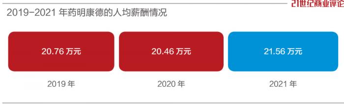 记者查询公司年报发现,2019至2021年间,药明康德的人均薪酬分别为20.76万元、20.46万元以及21.56万元,涨幅甚微,甚至中间有下降(可能有疫情因素)。