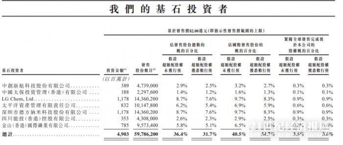 招股说明书披露了基石投资者的构成,LG化学、中创新航、德方纳米三家签订长协合同的产业链企业出现在名单中。
