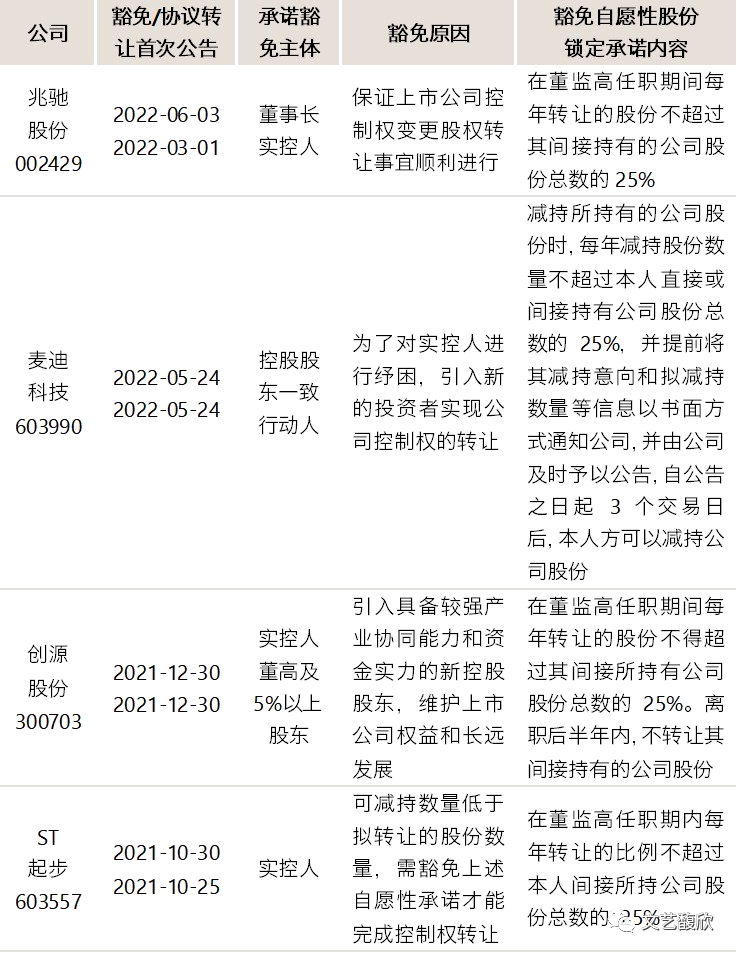 因此,对于这部分上市公司来说,若上市若干年后需要转让部分存量股来引进战略投资人,甚至转让控制权,就必须要豁免股东的自愿性股份锁定承诺。