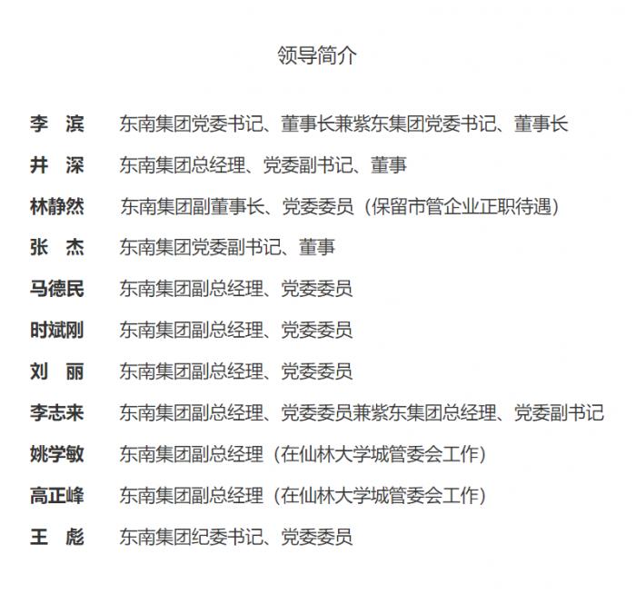 很快,东南集团官网更新了“领导简介”这一栏,林静然位于第三行,显示职务为“东南集团副董事长、党委委员(保留市管企业正职待遇)”。