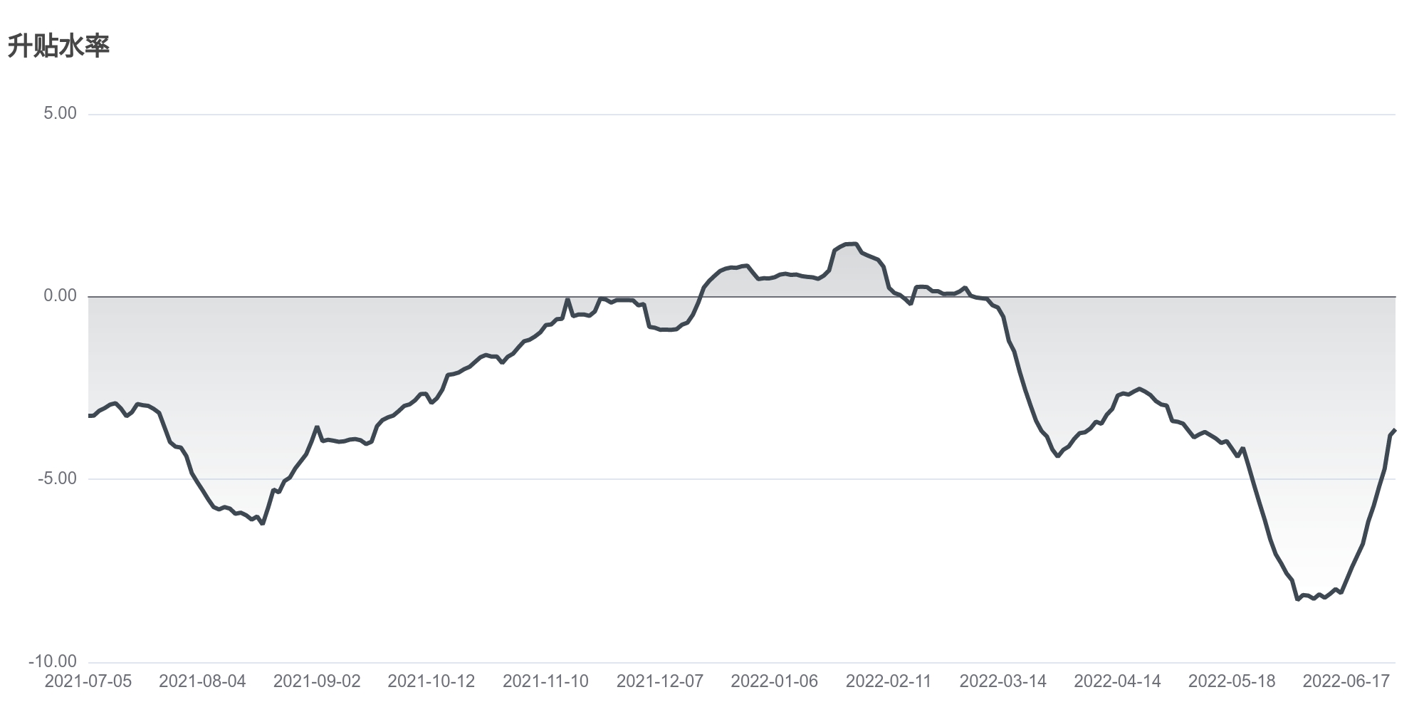 今日该指标值为-3.63%,目前该指标处于近一年中立区间,说明投资者对A股持中立情绪。反映期货市场投资者对市场的看法,该指标越高说明投资者认为当前市场较强,越低则说明认为市场相对较弱,因而与上证指数正相关。