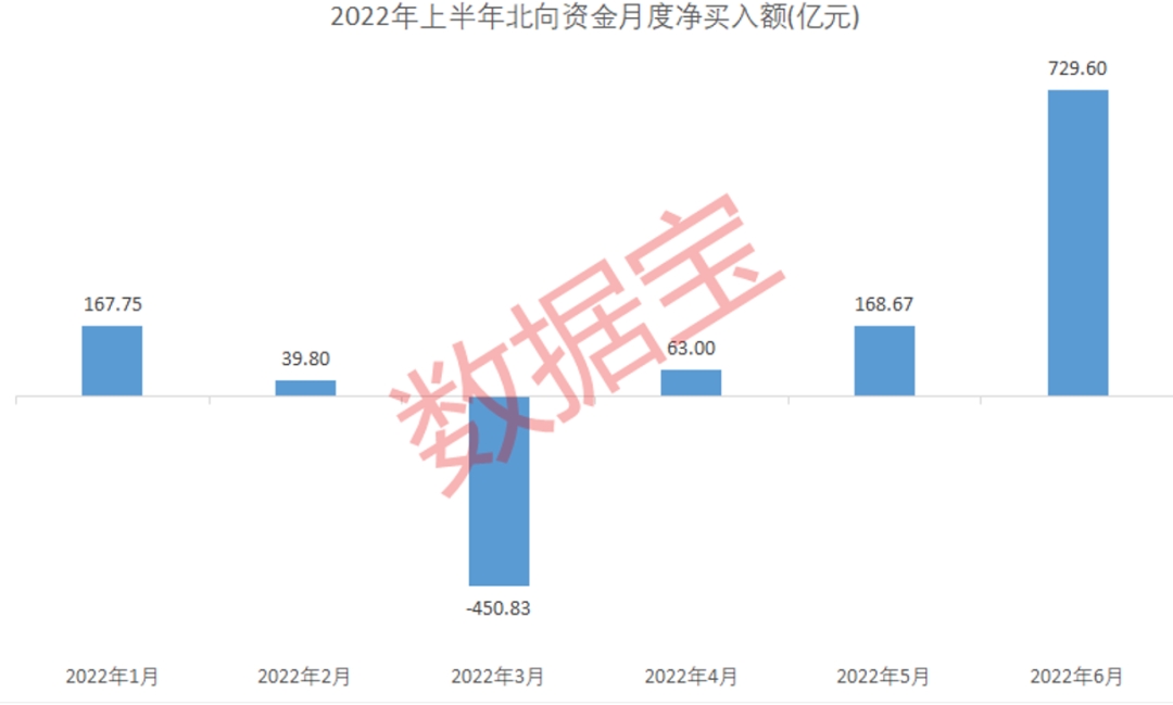 证券时报·数据宝统计,1-6月,北向资金累计净流入717.99亿元;其中,仅3月呈现为净流出态势,其余月份均为净流入。
