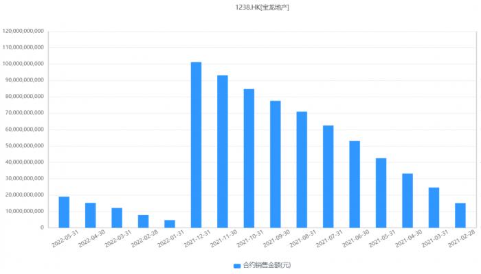 穆迪预计,宝龙地产的合同销售额将从2021年的1000亿元下降到2022年的600亿元左右。