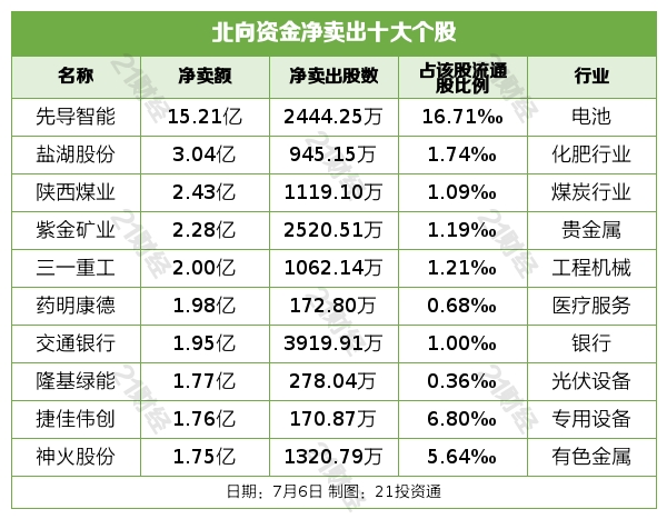 据21投资通(微信号ID:touzit21)智能监测,7月6日,北向资金净卖出13.83亿元,其中沪股通净卖出22.81亿元,深股通净买入8.98亿元。