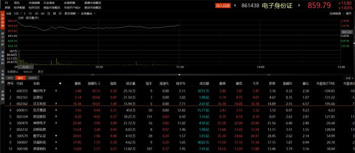 电子身份证指数早盘上涨1.63%/图片来源:Choice