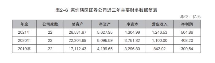 其中,深圳18家证券公司实现盈利,4家证券公司亏损,22家证券公司全年共实现营业收入1,246.53亿元,净利润504.86亿元,较2020年分别增长13.32%、23.68%。