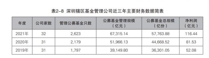 2021年,深圳辖区基金管理公司实现净利润116.44亿元,较2020年增长42.82%,其中,净利润在5亿元以上的有7家,分别为南方基金、招商基金、博时基金、景顺长城基金、鹏华、银华基金和前海开源基金。