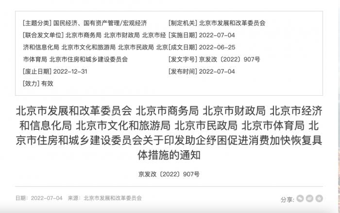 北京市发展和改革委员会 北京市商务局 北京市财政局 北京市经济和信息化局 北京市文化和旅游局 北京市民政局 北京市体育局 北京市住房和城乡建设委员会关于印发助企纾困促进消费加快恢复具体措施的通知