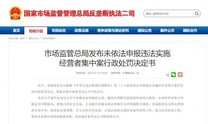 本次公开案件均为过去应当申报而未申报的交易。随着反垄断常态化监管的深入推进,企业经营者集中申报意识不断提高,积极自查历史交易,主动报告涉嫌未依法申报行为并积极配合调查。市场监管总局坚决贯彻落实党中央、国务院决策部署,全力支持企业发展,正依法加快完成存量案件清理工作,助力企业轻装上阵,推动企业和行业持续健康发展。其余案件处罚决定书将陆续公开。
