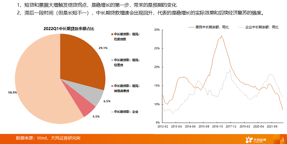 2、滞后一段时间(但是长短不一),中长期贷款增速会出现回升,代表的是稳增长的实际效果和后续经济复苏的强度。