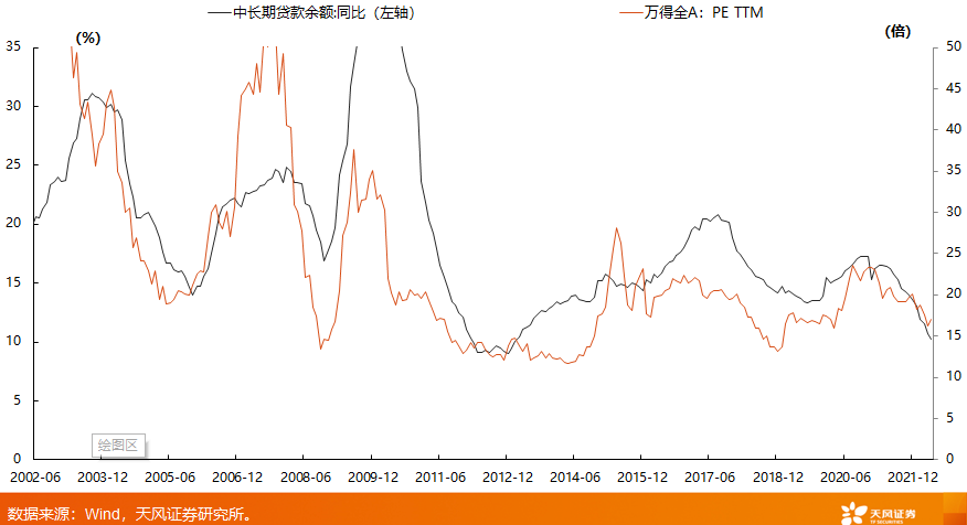 3、第三步:每一次估值中枢的趋势抬升,都对应着代表经济预期的【中长期贷款增速】的转折。