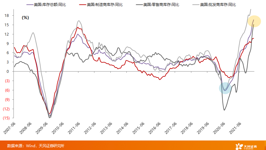 20年疫情后,美国库存低位;22年疫情前后,库存高位