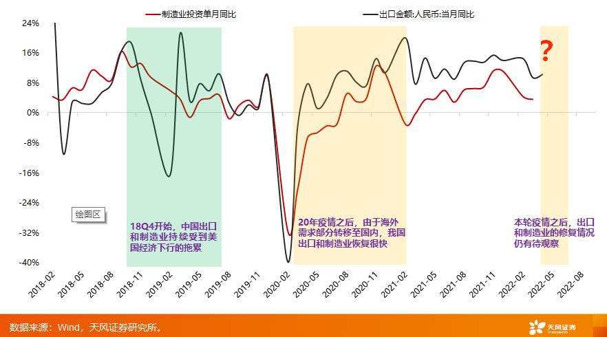 另一种概率比较小的情况是,如果万一美国真的马上就开始衰退了,对A股的影响关键就是看国内经济本身能否先起来,所谓“打铁还需自身硬”。