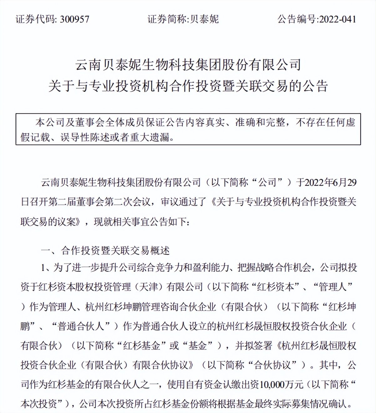 除了开启多品牌矩阵,6月30日,贝泰妮还发布公告称,为了把握战略合作机会拓展业务发展空间,完善整体布局,提升公司综合竞争力和盈利能力,公司拟投入1亿元投资在美妆领域有着多年投资经验的红杉资本。对于贝泰妮,投资红杉基金无疑是其快速涉猎更多美妆细分赛道的一道桥梁。但公司未来还能否继续打造出与薇诺娜旗鼓相当的品牌,还需时间和市场的检验。
