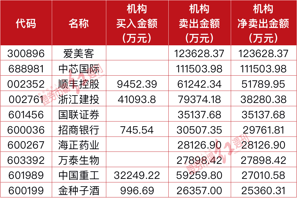 与之相反,被机构净卖出的也有128家公司,譬如爱美客、中芯国际就被机构净卖出金额高达12.36亿元和11.15亿元。