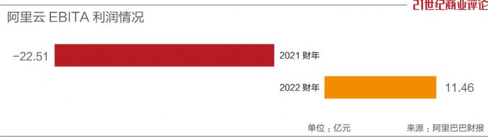 2022财年(2021年4月-2022年3月),阿里云首度实现盈利,利润(EBITA)从上年度的亏损22.51亿元,大幅改善为今年盈利11.46亿元。