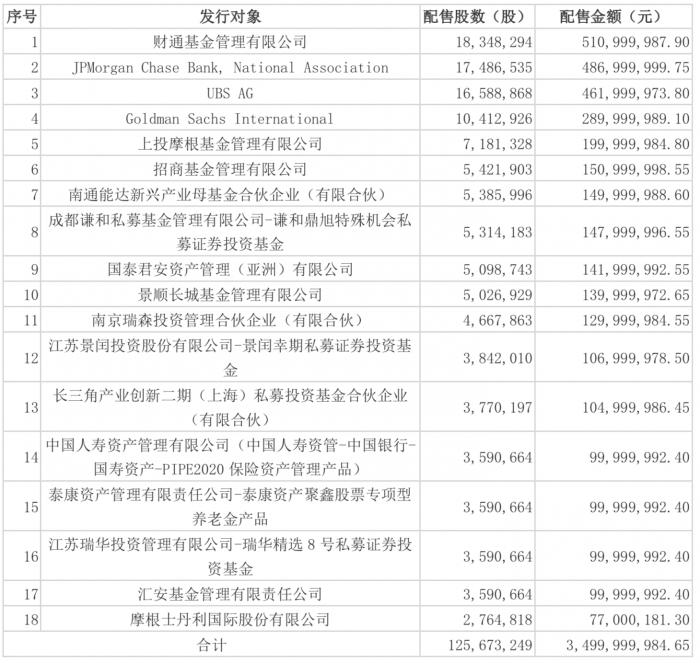 星源材质35亿定增出炉 财通基金、招商基金、摩根大通等18家发行对象获配