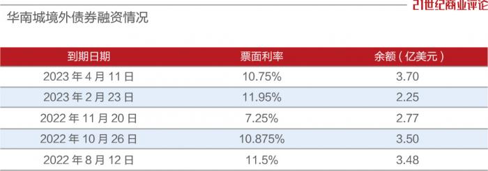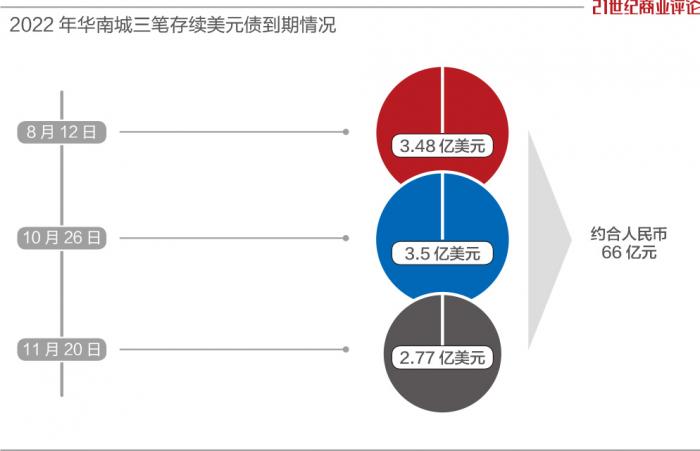 引入国资股东之后,华南城的融资环境、流动性压力有所缓解,但债务危机尚存。2022年8月开始,华南城将有多笔美元债陆续到期,出售资产仍是未来脱困的选项之一。