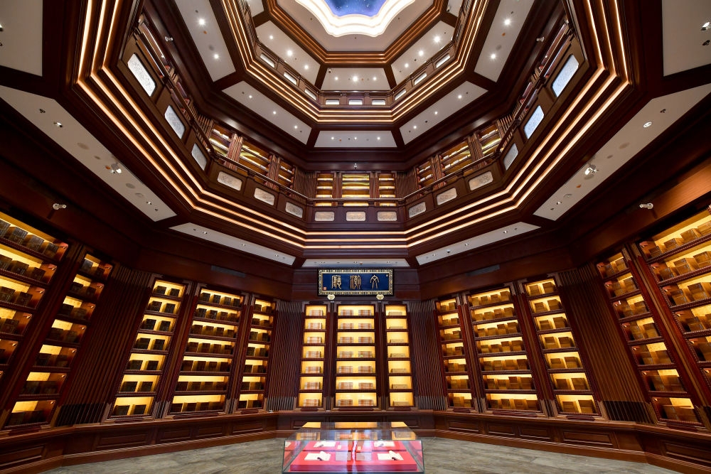 ↑这是在北京拍摄的中国国家版本馆中央总馆文瀚阁文瀚厅(7月23日摄)。