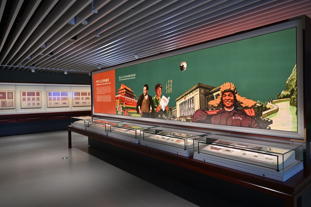 ↑这是在北京拍摄的中国国家版本馆中央总馆内的展览陈设(7月23日摄)。