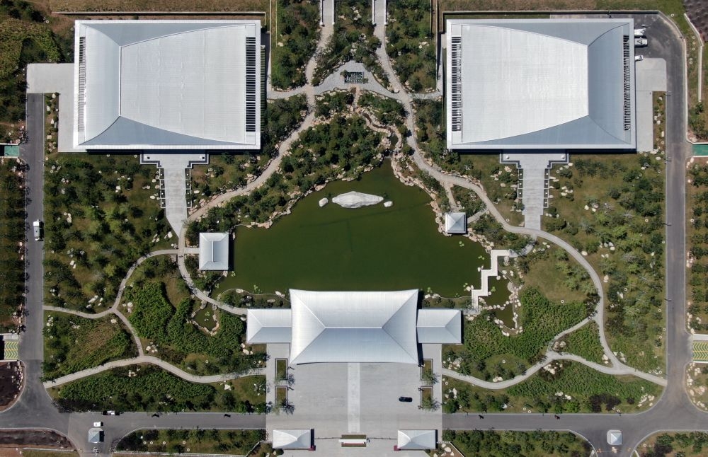 ↑7月23日,俯瞰西安国家版本馆(无人机照片)。