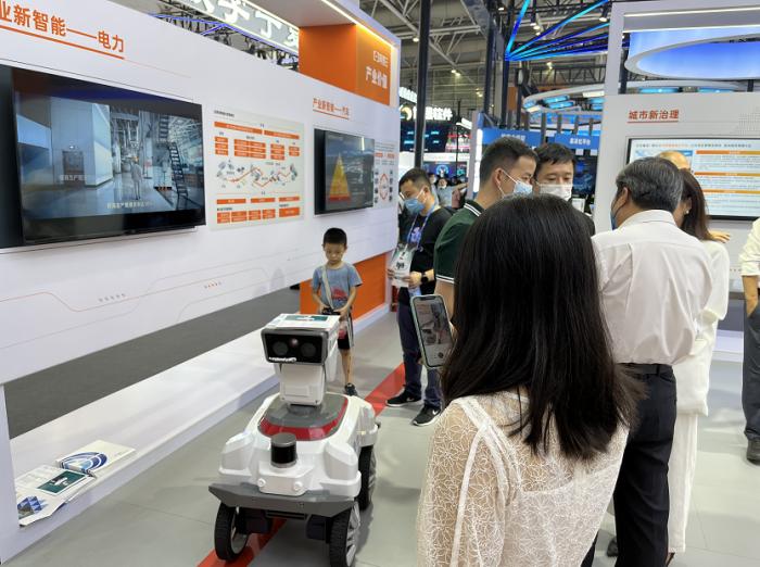 “这个机器人加载了阿里云导航算法,设置路线后就能自动巡检配电房,利用摄像头和红外线发现故障。”日前在福建福州举办的第五届数字中国建设峰会上,21世纪经济报道记者在阿里巴巴展区看到,讲解员正演示介绍一款长相呆萌的“机器人电工”。