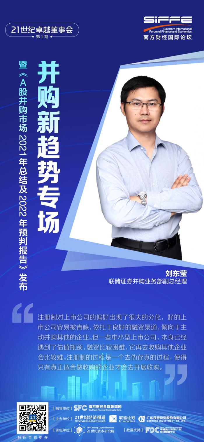 7月29日,由南方财经全媒体集团指导,21世纪经济报道、联储证券和粤民投联合发起的南方财经国际论坛21世纪卓越董事会第一期“并购新趋势专场暨《A股并购市场2021年总结及2022年预判报告》线上发布会”正式开幕。