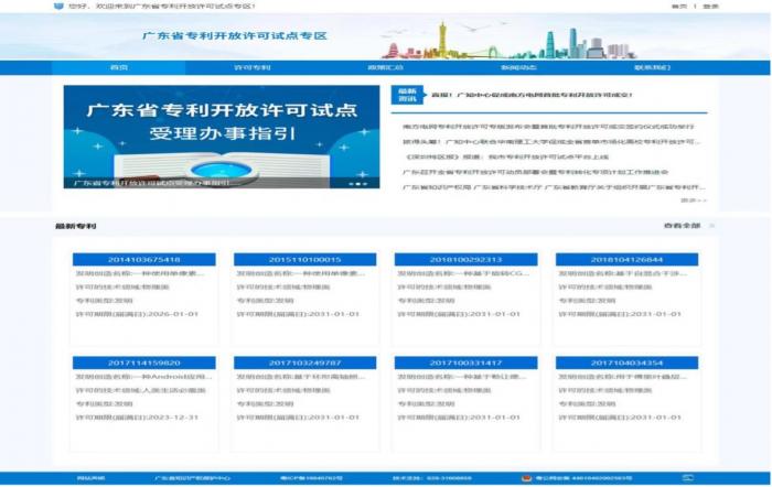 (广东省专利开放许可试点专区首页展示界面)