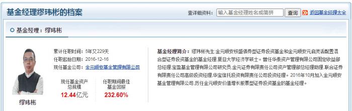 在近5年的任职期内,基金回报率达到232.6%,缪玮彬被业内称为“小规模王者”。