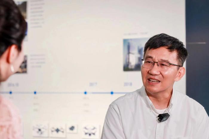 李泽湘教授在XbotPark松山湖机器人基地接受采访。