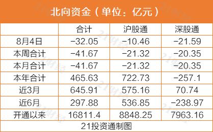 据21投资通(微信号ID:touzit21)智能监测,北向资金全天净卖出32.05亿元,其中沪股通净卖出10.46亿元,深股通净卖出21.59亿元。