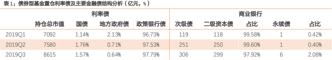 我们用债券型基金的重仓券来近似分析基金持仓券种结构。