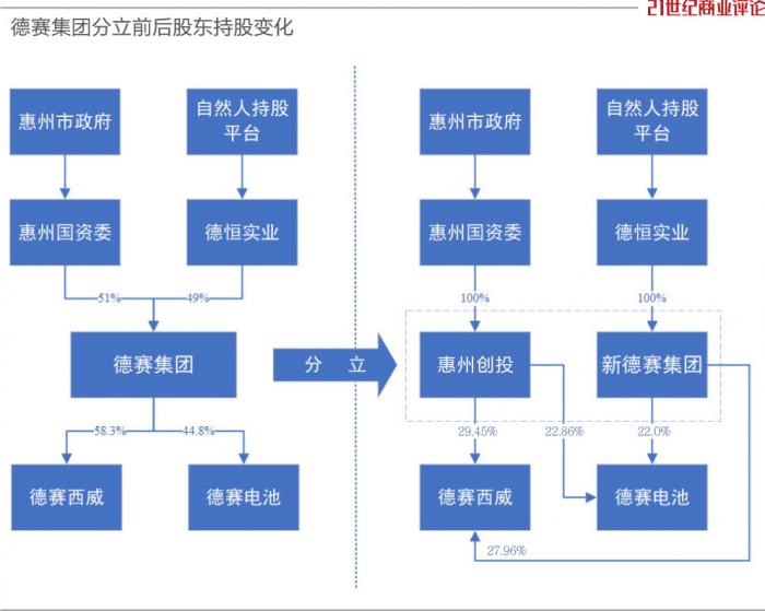 该集团还拥有另一家上市公司,市值126亿元的德赛电池。工商信息显示,德赛集团持有德赛西威和德赛电池的股权分别为27.69%、22%。