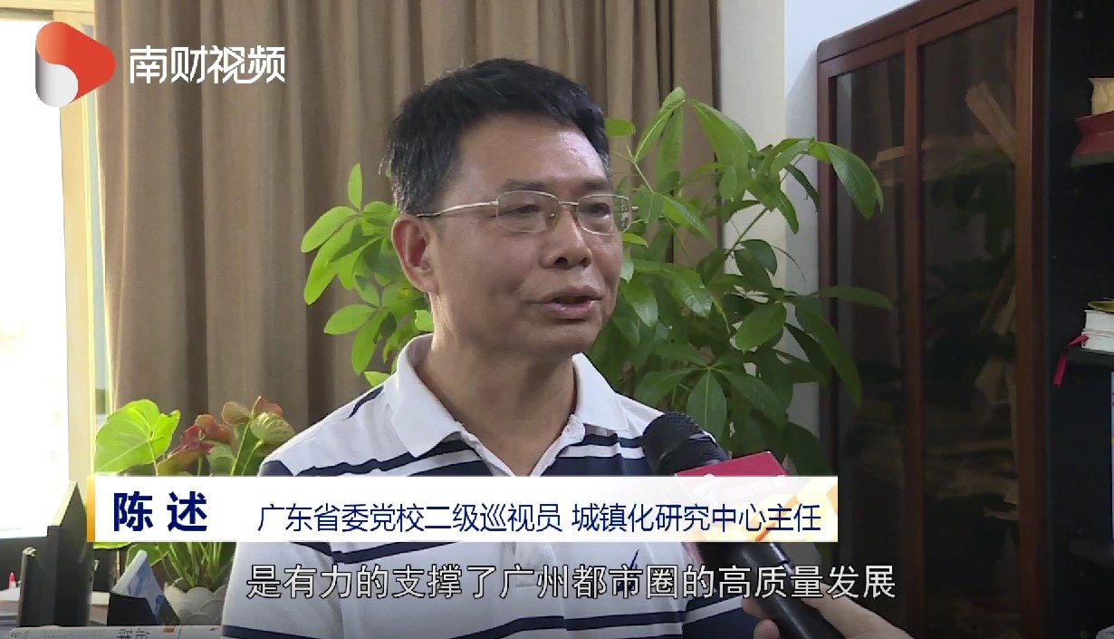广东省委党校二级巡视员 城镇化研究中心主任 陈述:广州都市圈和空间的重构里面,那么主要是通过轨道交通去联通,轨道交通的基础设施的联通的话,它是有赖于提高了能源的效率、能源的供给,也提高了城市的宜居性,大广佛的话,首先要构建一个不同层级的全球中心、都市中心、区域中心和战略中心,另外还有社区中心这样一个空间结构的话,是有力地支撑了广州都市圈的高质量发展。