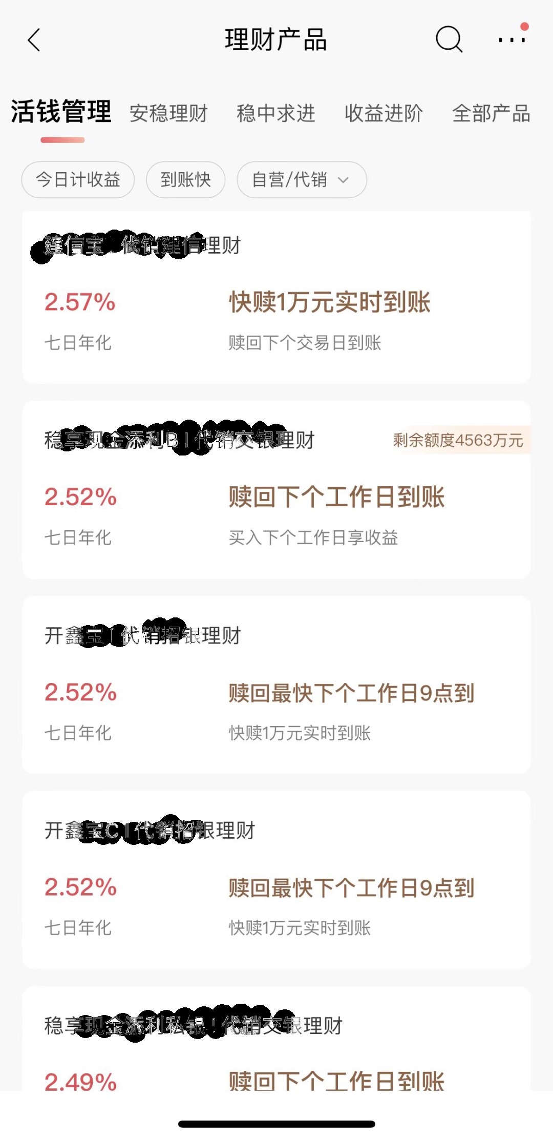 此类产品7日年化收益率较高的,可以到2.5%左右。货币基金可以理解为基金公司管理的现金类产品,而这类产品就是银行子公司管理的现金类产品。本质投资的底层标的是一样的,但这些产品就是比普通的货币基金稍稍高一点。