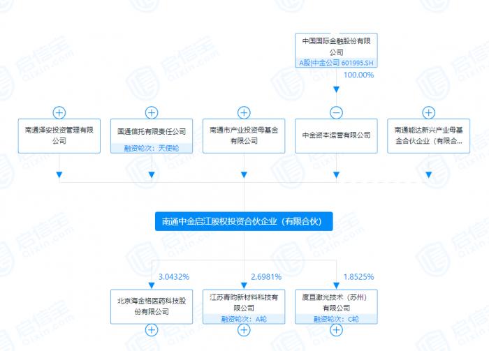 启信宝显示,南通中金成立于2021年2月7日,股东包括中金资本运营有限公司、国通信托、南通泽安投资管理有限公司等5家。