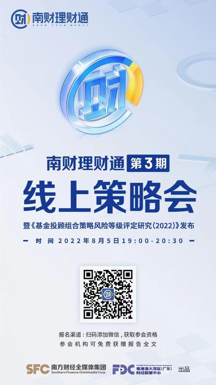 8月5日,南方财经全媒体集团、南财理财通、21世纪经济报道成功举办第三期线上策略会,来自头部基金投顾试点机构盈米基金、嘉实财富和中欧财富以及基金评级机构晨星中国和上海证券的多位行业大咖就基金投顾组合策略风险等级评定的话题阐述了相关理论和实践经验,为基金投顾组合策略风险等级的评定建言献策。