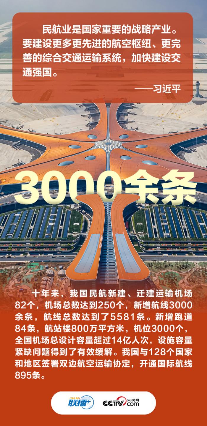 近十年,我国交通运输事业取得辉煌成就。央视网《联播+》特推出创意海报,与您一同数读我国交通运输发展精彩成果。