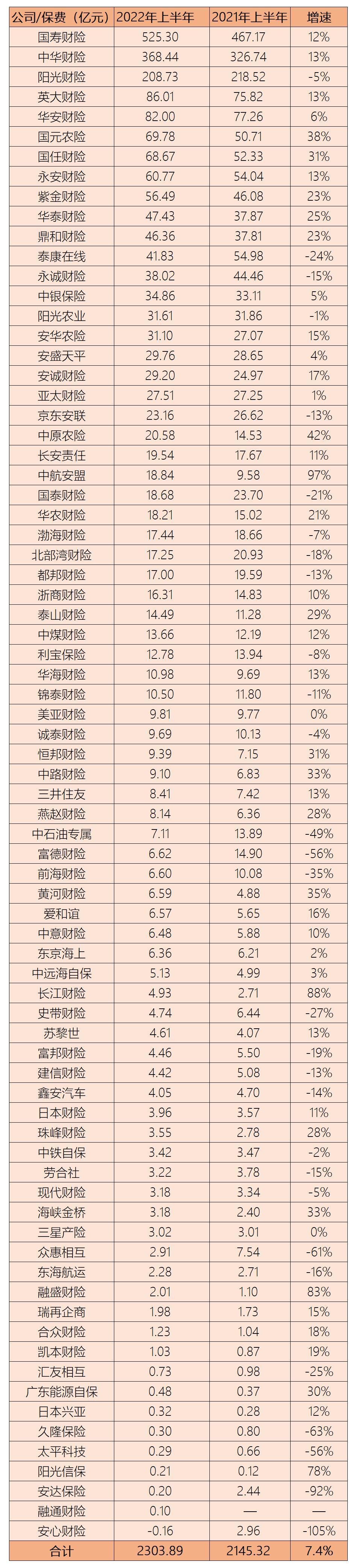 根据二季度偿付能力报告披露的数据,今年上半年,76家非上市财险公司共实现保险业务收入2303.89亿元,同比增长7.4%。
