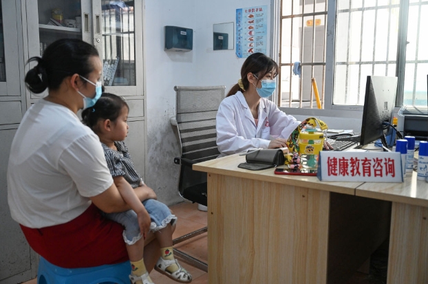 ↑2022年6月24日,村民在位于下党村的乡镇卫生院进行健康咨询。